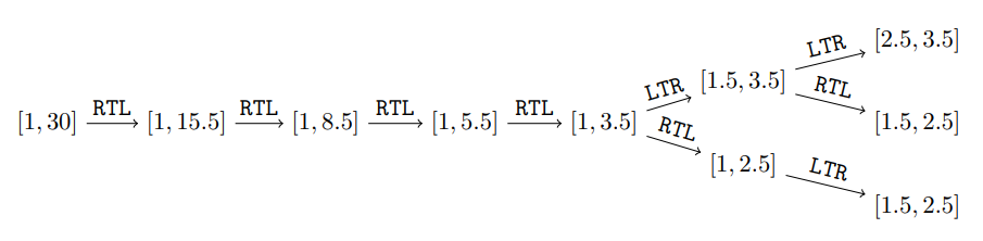 - :選擇最大的 滿足 且 是質數,並將區間縮小為 。